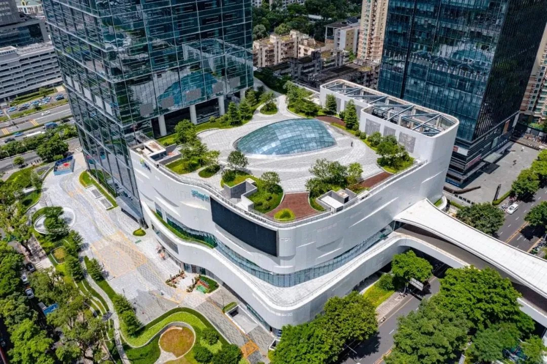 此外,深圳天河城的商業(yè)區(qū)域與3萬平方米的屋頂花園共享,將生態(tài)和綠色空間巧妙地融入購物中心的設(shè)計(jì)之中。為了確保商業(yè)空間與外部自然環(huán)境的無縫對接,深圳天河城特別設(shè)計(jì)了空中步廊,將項(xiàng)目與圍嶺山公園連接起來,實(shí)現(xiàn)了從屋頂花園到自然公園的流暢過渡,為消費(fèi)者提供了一個(gè)連續(xù)的游逛體驗(yàn)。